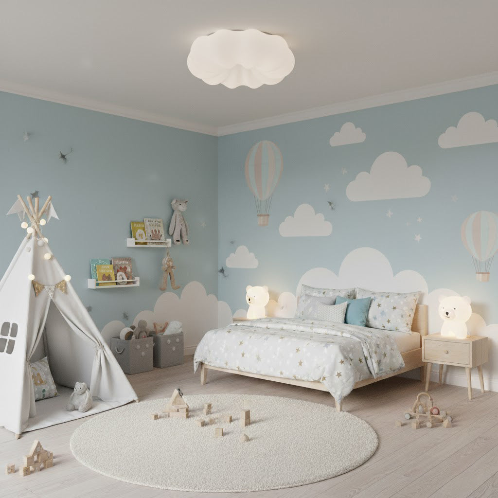 زين غرفة نومك أو غرفة معيشتك بمصابيح سقف KUMO! يمكن لتصميمه الذي يشبه السحابة وحجمه الكبير أن يضيء ويزين أي حجم للغرفة.