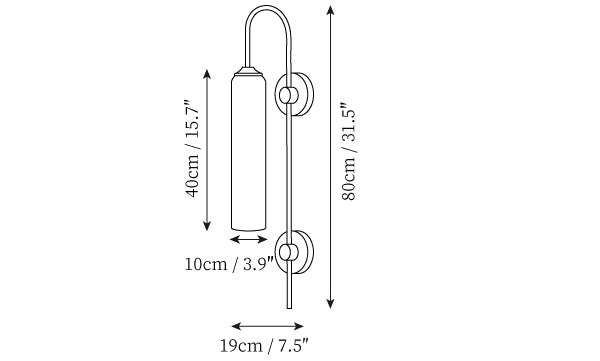 حجم الموديل B: العرض 19 سم × الارتفاع 80 سم / العرض 7.5 بوصة × الارتفاع 31.5 بوصة