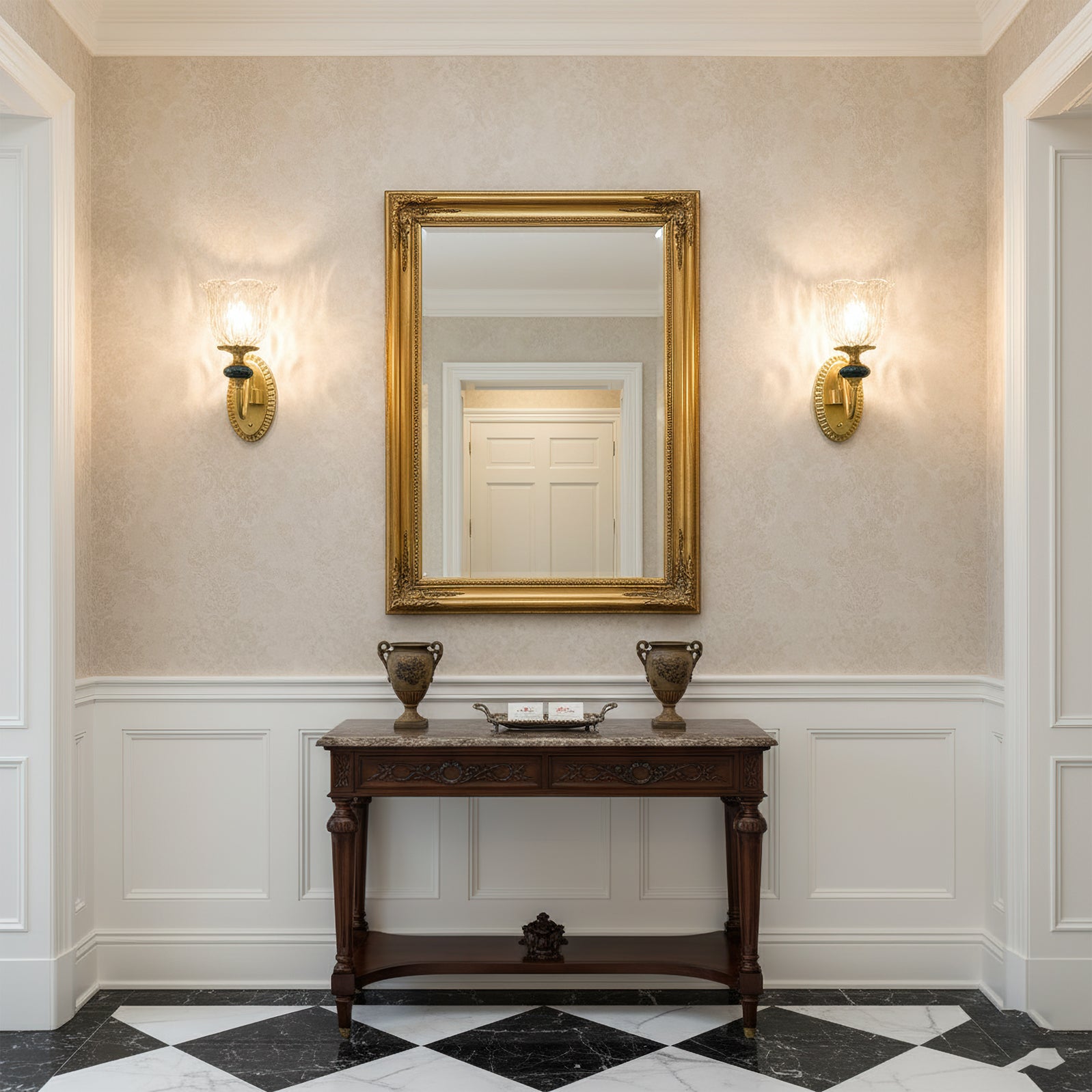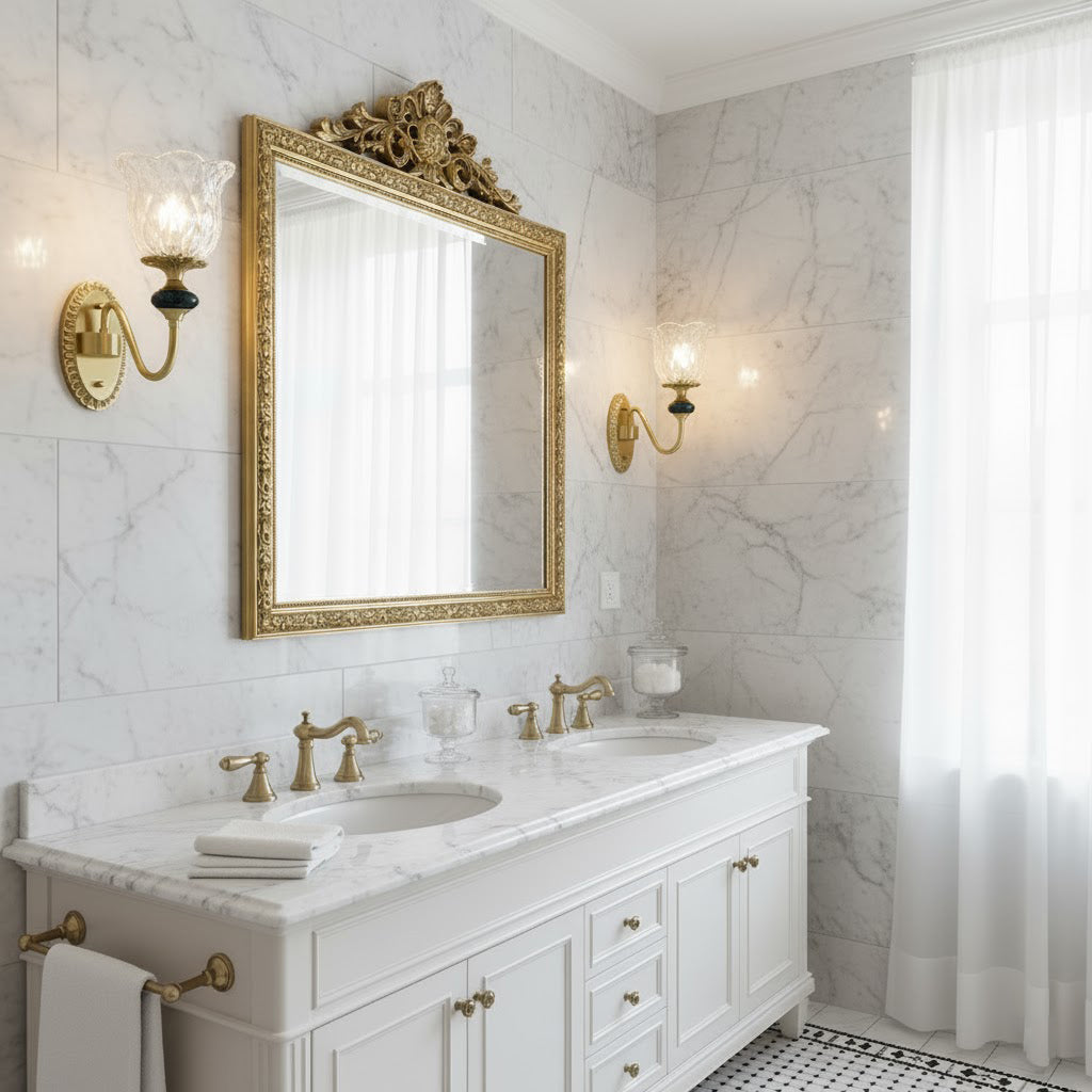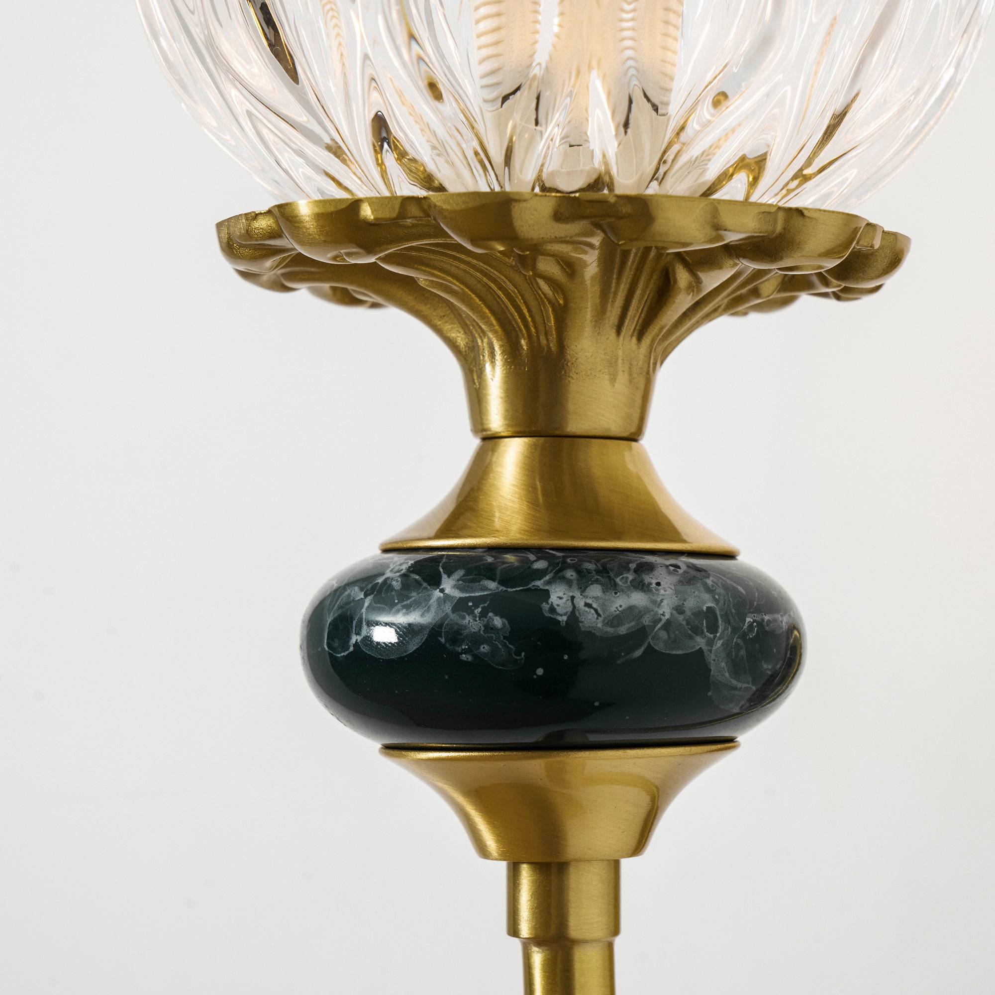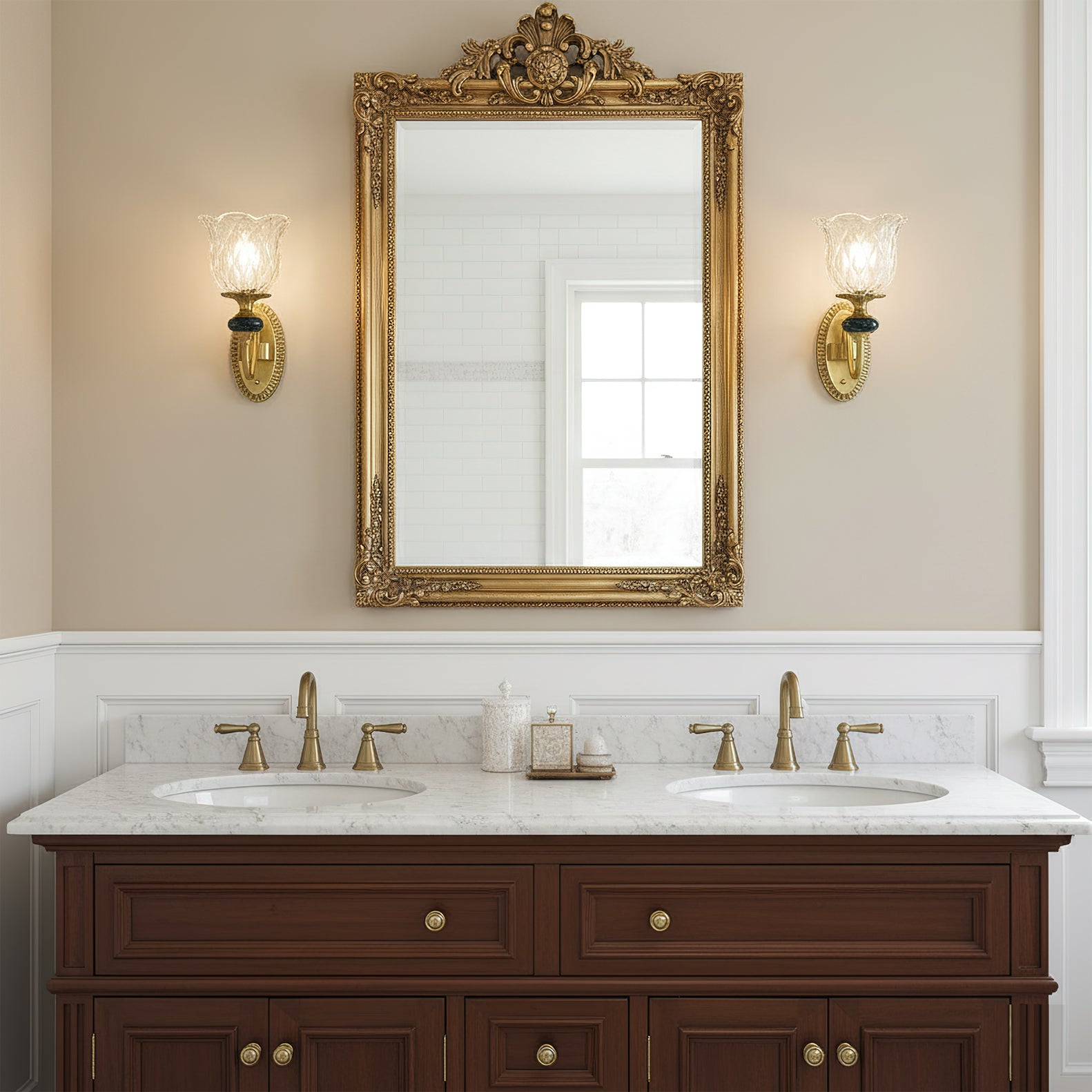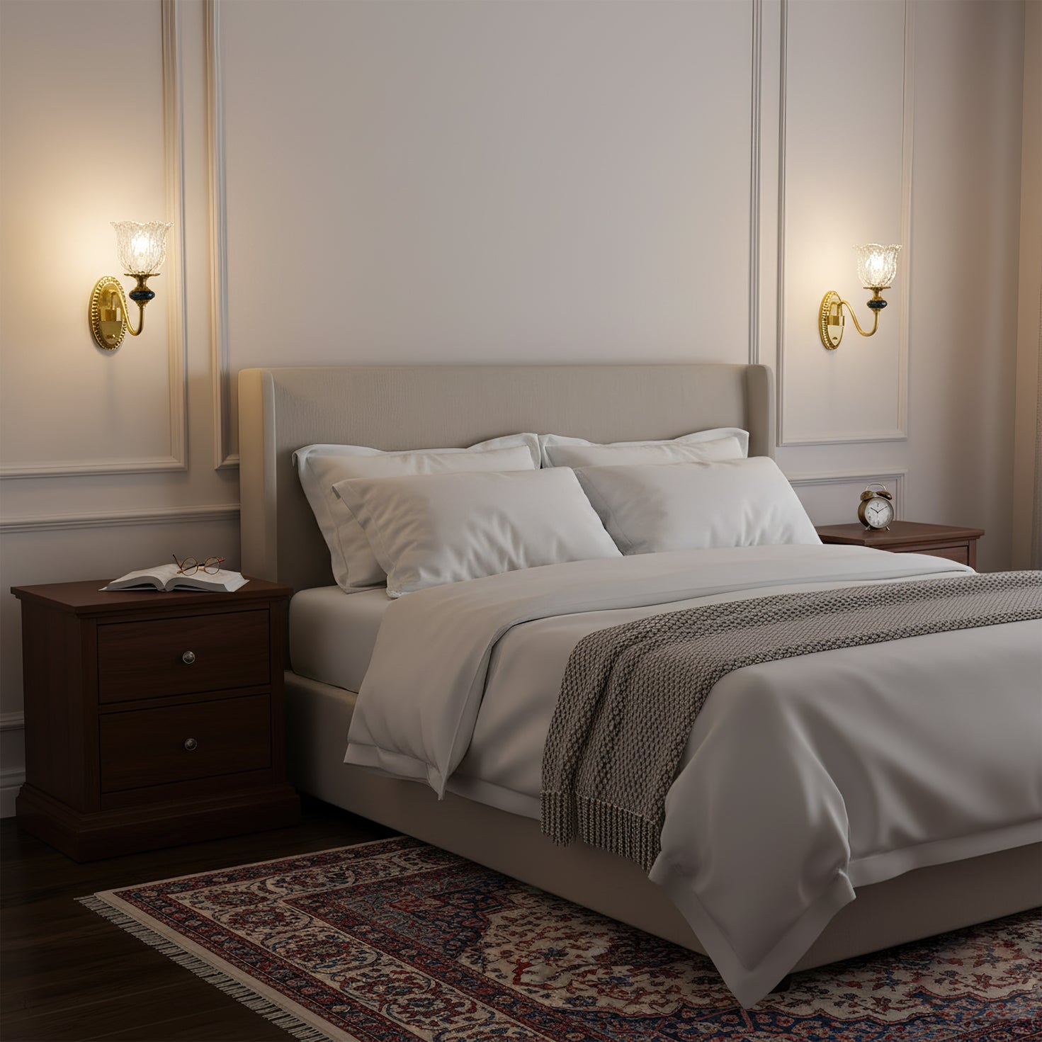 يتم تعريف مصباح الحائط هذا من خلال الذراع المنحني واللوح الخلفي البيضاوي المنحوت، مع زخرفة سيراميك زرقاء. هذا التصميم مزخرف وبسيط، وهو تقليدي الطراز.