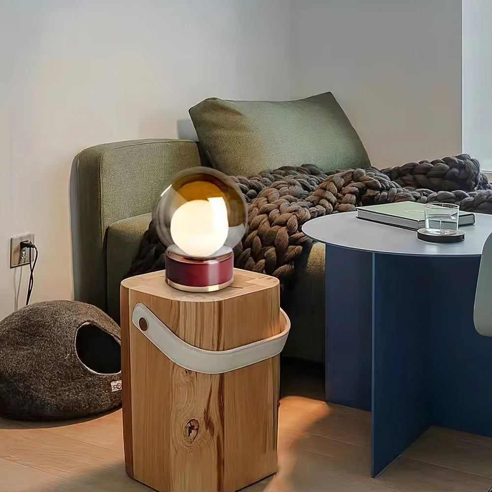 3.The Orbital Table Lamp offers celestial bodies with hypnotically glowing cores. The ingenious design of a hand-blown glass lens, held in place by a metal band creates a fascinating visual experience.