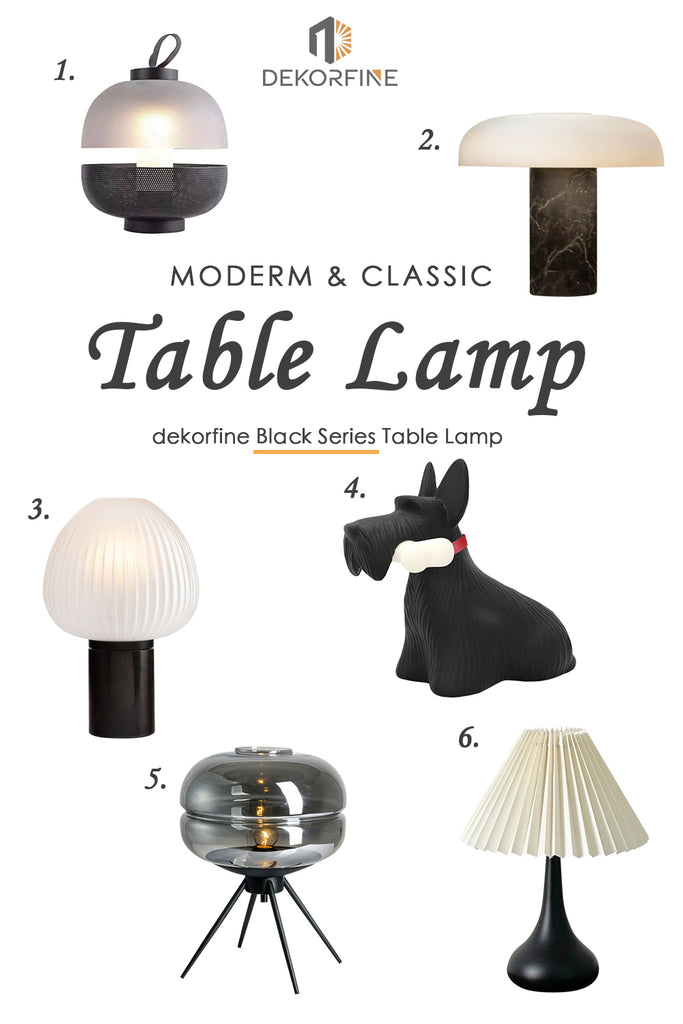 1.Century Table Lamp 2.Tropico Media Table Lamp 3.Chanya Table Lamp 4. Scottie Table Lamp 5. JAR Table Lamp 6.Drum Table Lamp