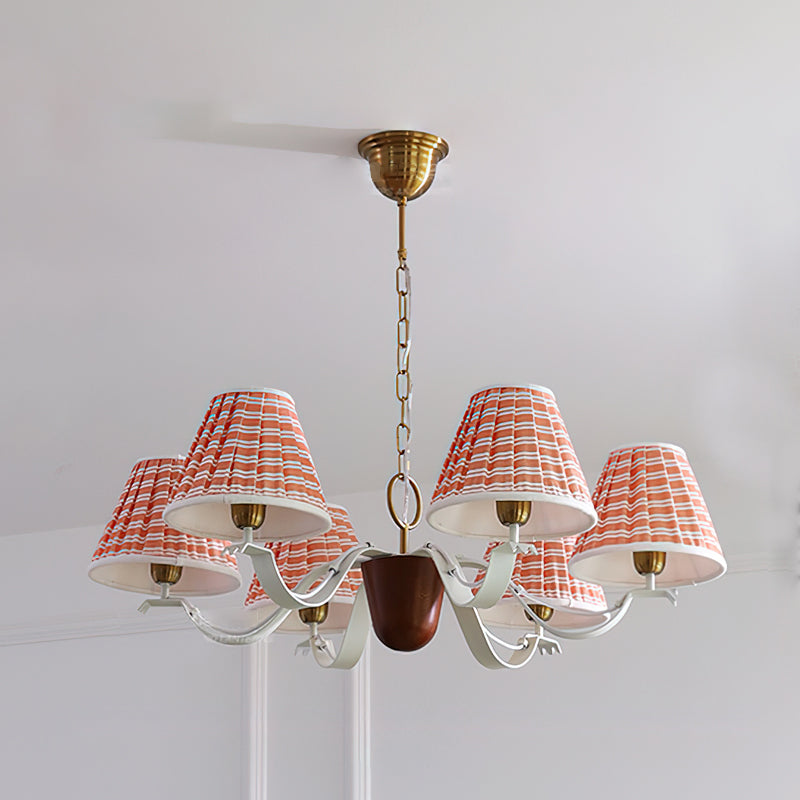 The real star of the show here are the custom fabric shades. Their fun, coral-and-white woven pattern adds a cheerful pop of color and gives off a soft, inviting glow that makes a space feel instantly cozy. We love how it feels both classic and totally modern at the same time.