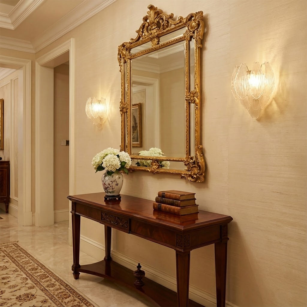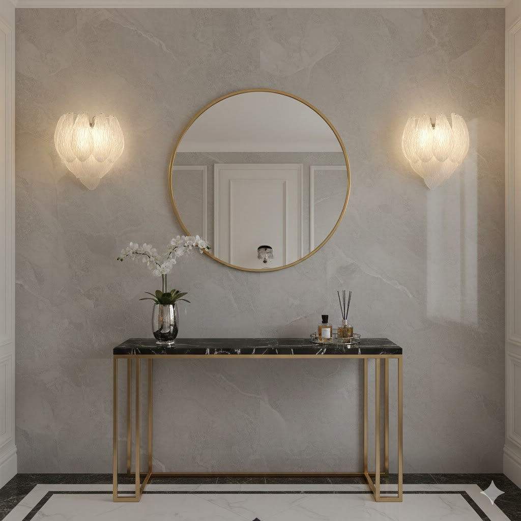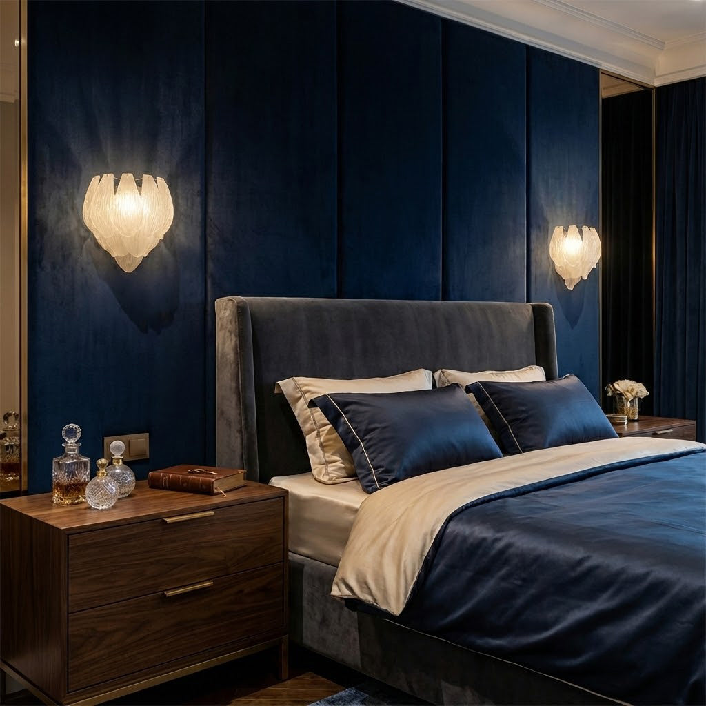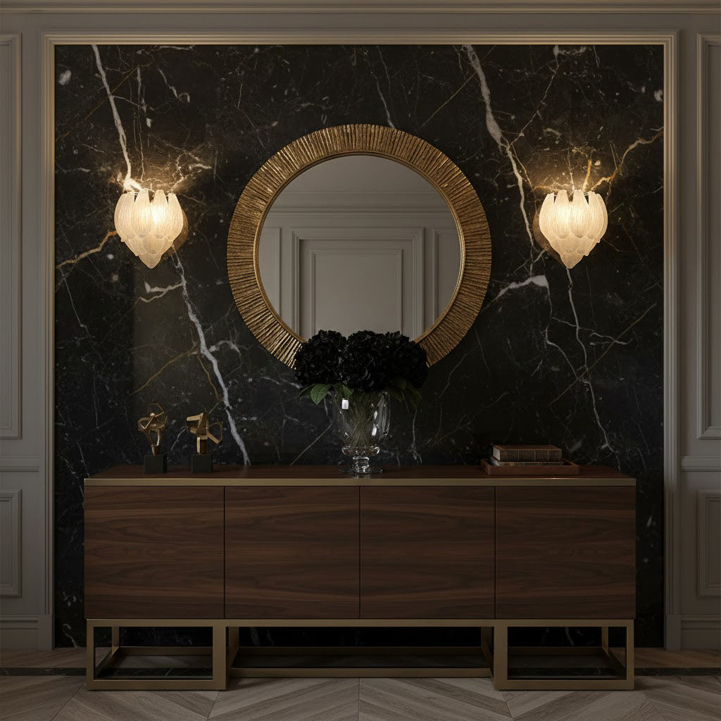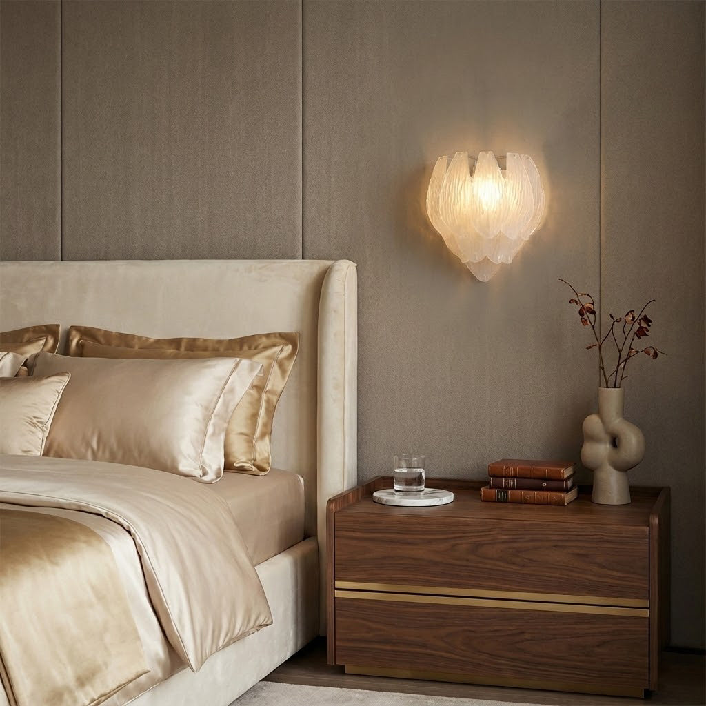Ethereal and sculptural, the Frosted Petal Wall Light – Dekorfine evokes the softness of blooming petals with its delicately textured Murano glass. Each glass leaf is expertly frosted to diffuse light with a gentle, ambient glow, while the metal base adds a refined contrast that complements both vintage and contemporary interiors. Whether installed in a hallway, bedroom, or beside a mirror, this piece becomes an elegant accent that elevates the mood of any space. Part of the Murano collection, it celebrates craftsmanship and timeless design.
