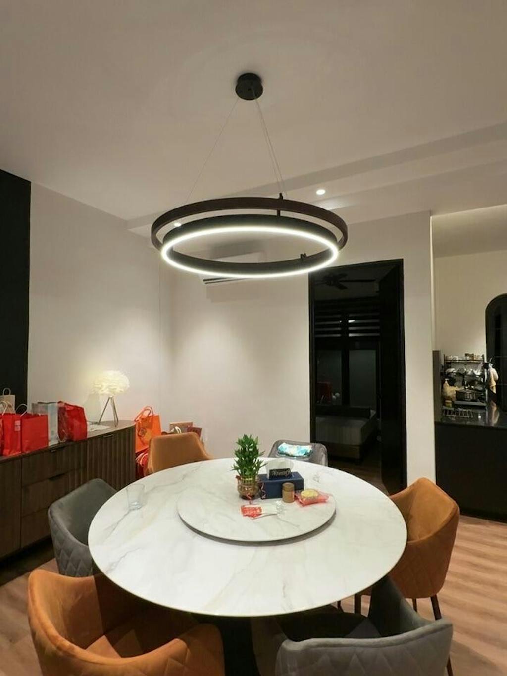 Ring Dunst Chandelier is a beautiful, contemporary piece that is sure to add a touch of elegance to any space. This chandelier features two rings that provide a graceful halo of light, making it perfect for use in both residential and commercial settings.