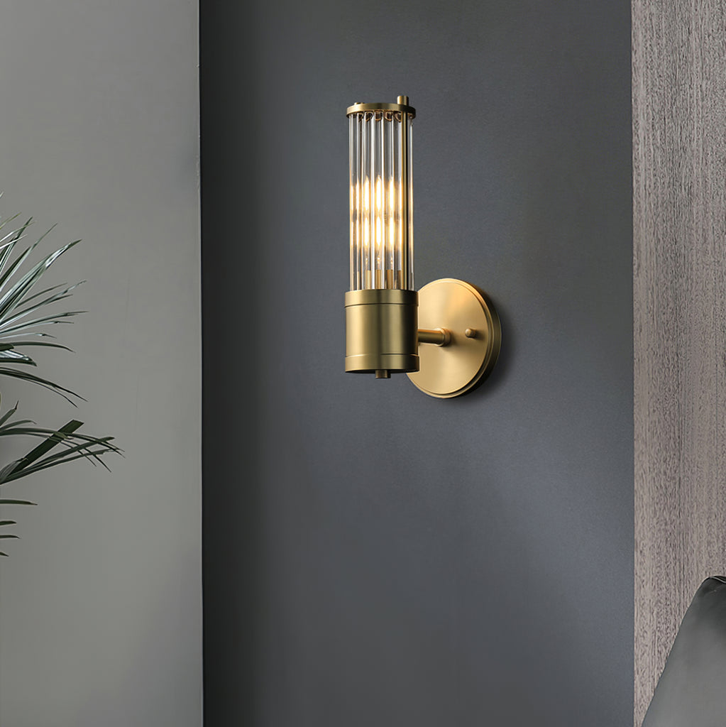 This sconce wall light has a contemporary as well as mid-century look. The glass rods formed the cylinder-looking shade and gives off beautiful beams of light. You can install it in a vertical or horizontal direction according to your needs. Suitable for living room, vanity, or powder room.