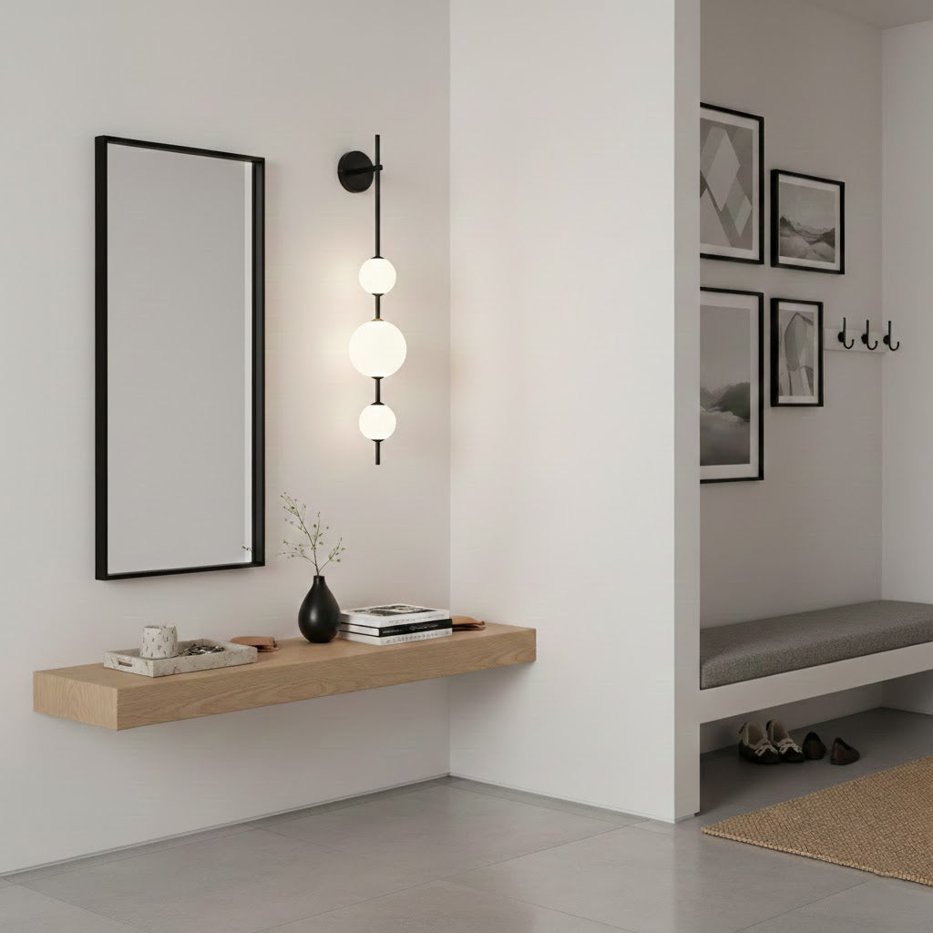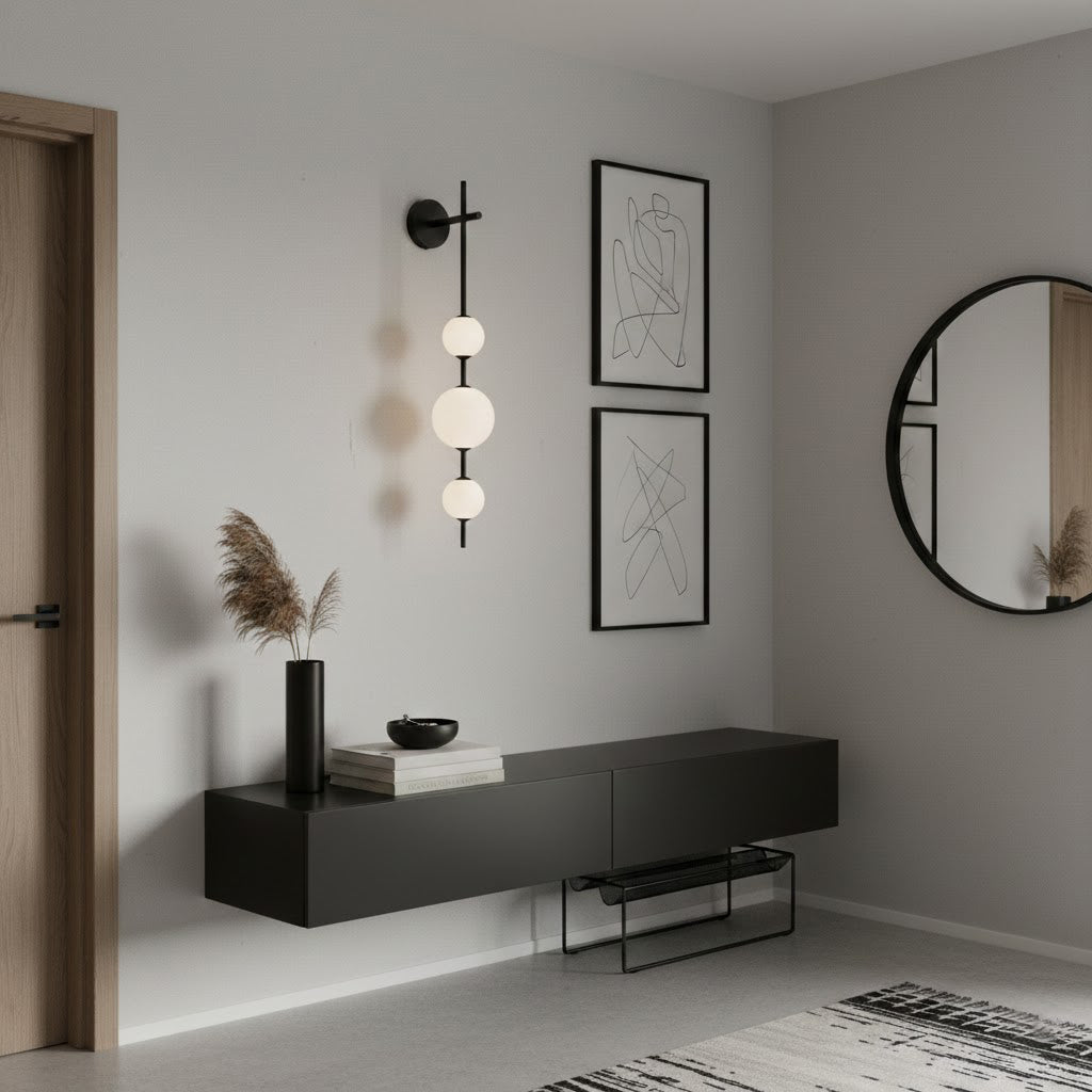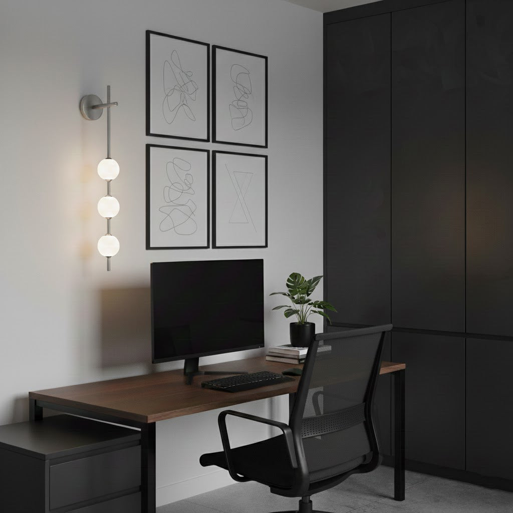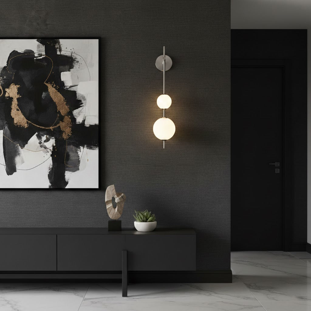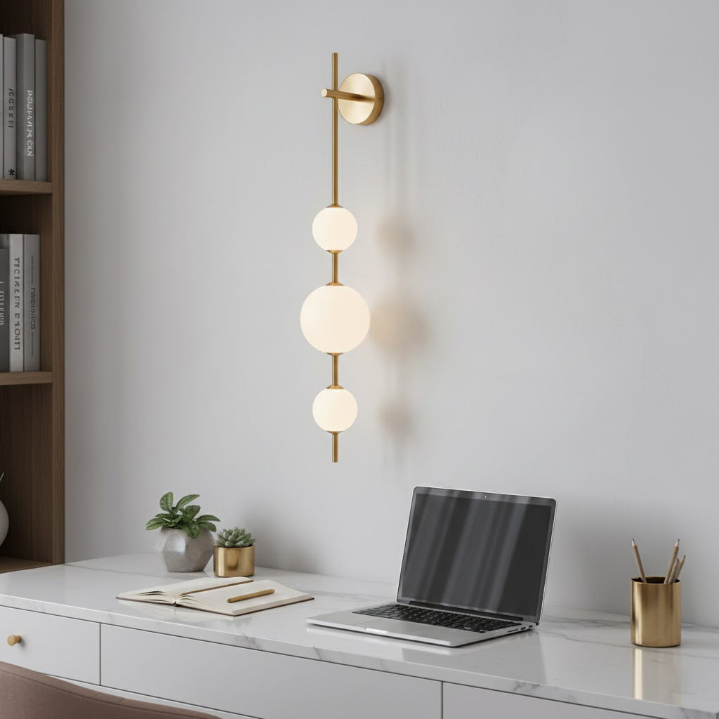 Add stylish lighting to any space with this Vertical Globe Wall Lamp. This sconce makes a welcome addition to your indoor lighting. It features a fixed wall-mounted design with a brass body in a brass finish for a glam, minimalist look. The spherical shades in a matte white finish diffuse light with a warm, cozy glow