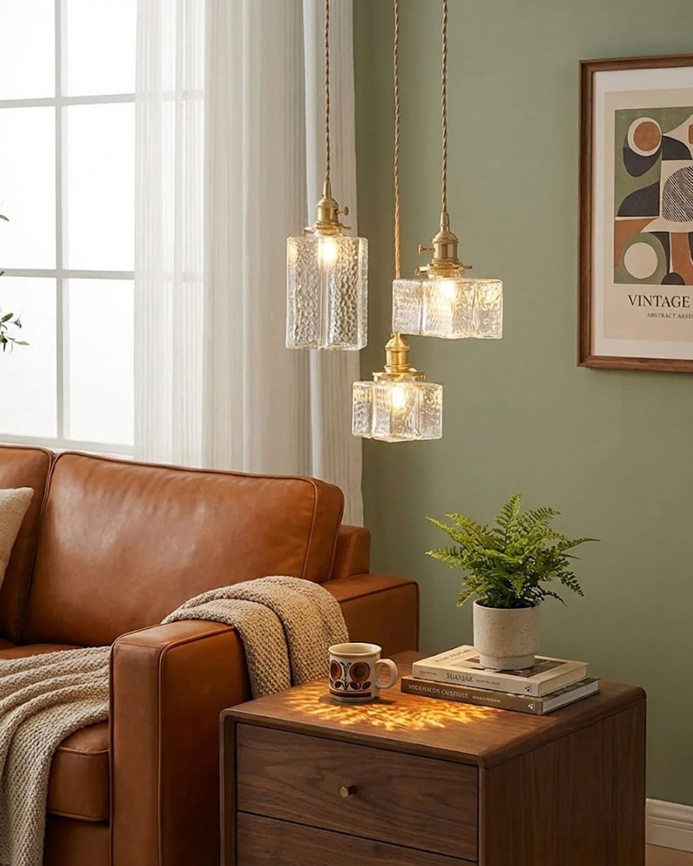Our Jewel Brass & Glass Pendant Light is going to dazzle everyone with their brilliance. Providing a significant amount of light above a kitchen island, dining room table, bedside table, hallway or the corner of a living room, this gorgeous pendant light is guaranteed to be the main attraction in your home. Beautifully crafted of hammered glass and copper, our jaw-dropping boxy pendant light has mesmerizing charm. Hang this pendant individually for an elegant touch in any setting, or get creative and hang multiples of the same size to create an eye-catching display that is bound to impress. Our stunning pendant light is the perfect pairing of brass and glass stone that offers a captivating textured look.