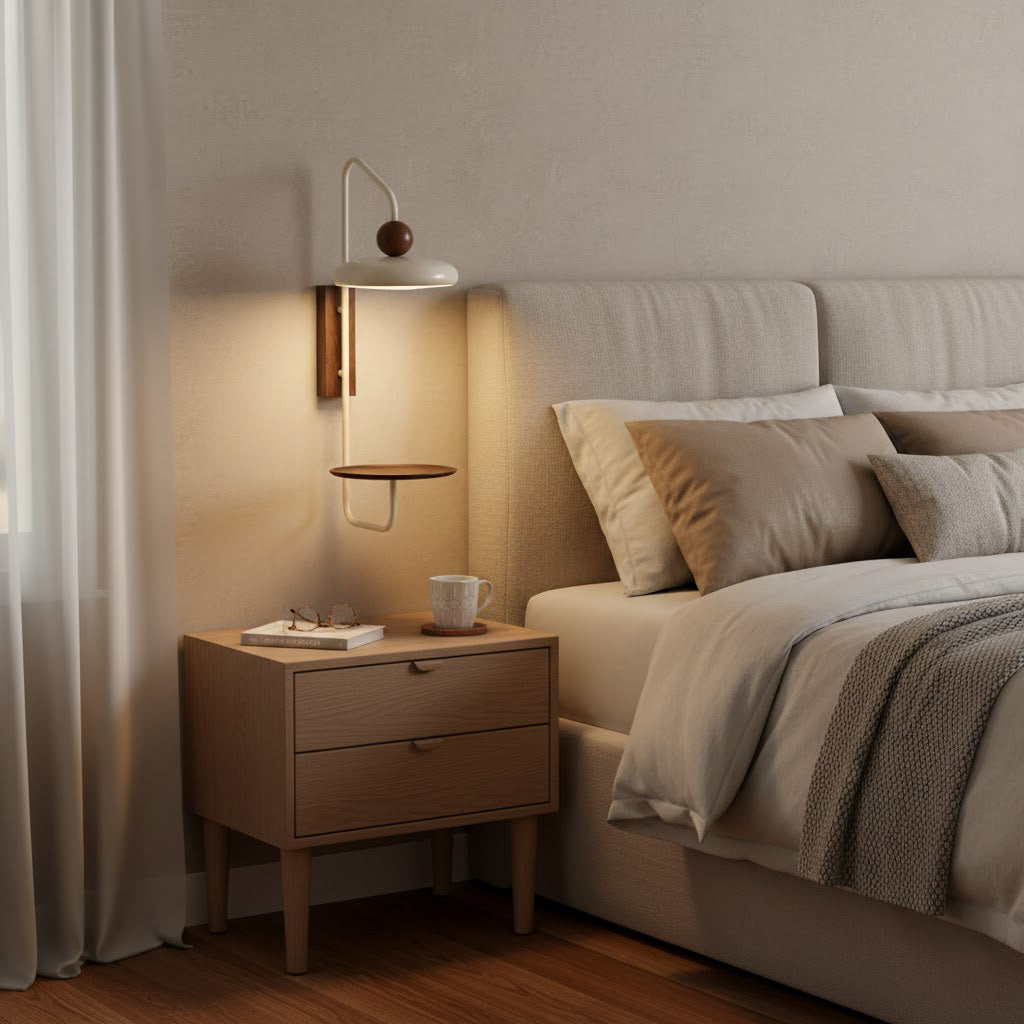 La lampada da parete Grote è un'aggiunta elegante e funzionale a qualsiasi spazio. Caratterizzata da un design moderno con linee pulite e un'estetica minimalista, questa lampada combina un elegante paralume beige con un accento in legno a contrasto e un piccolo ripiano integrato. Il ripiano offre un comodo punto per una tazza o piccoli oggetti decorativi, rendendolo perfetto per camere da letto, soggiorni o angoli lettura. Illumina il tuo spazio aggiungendo un tocco di eleganza e praticità con la lampada da parete Grote