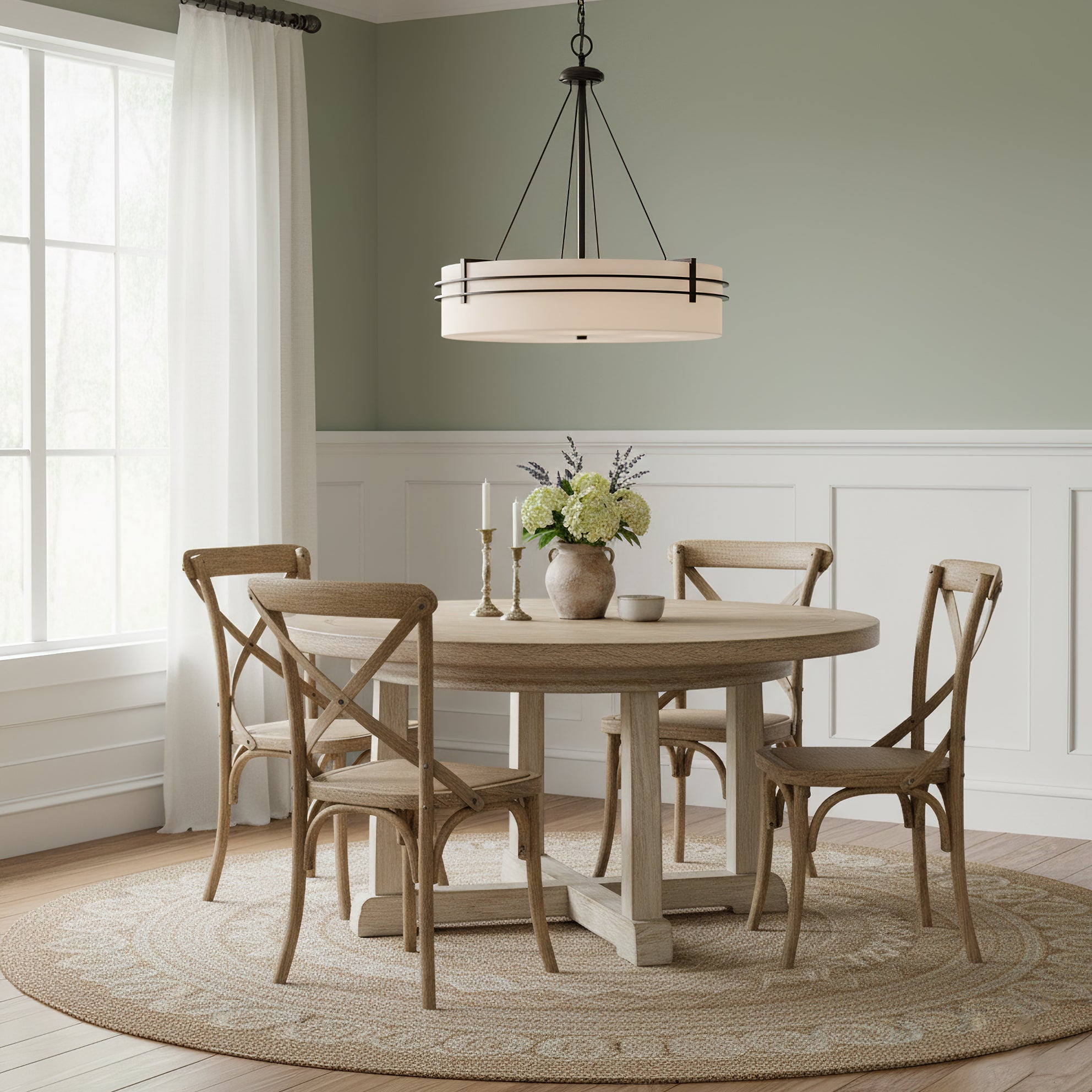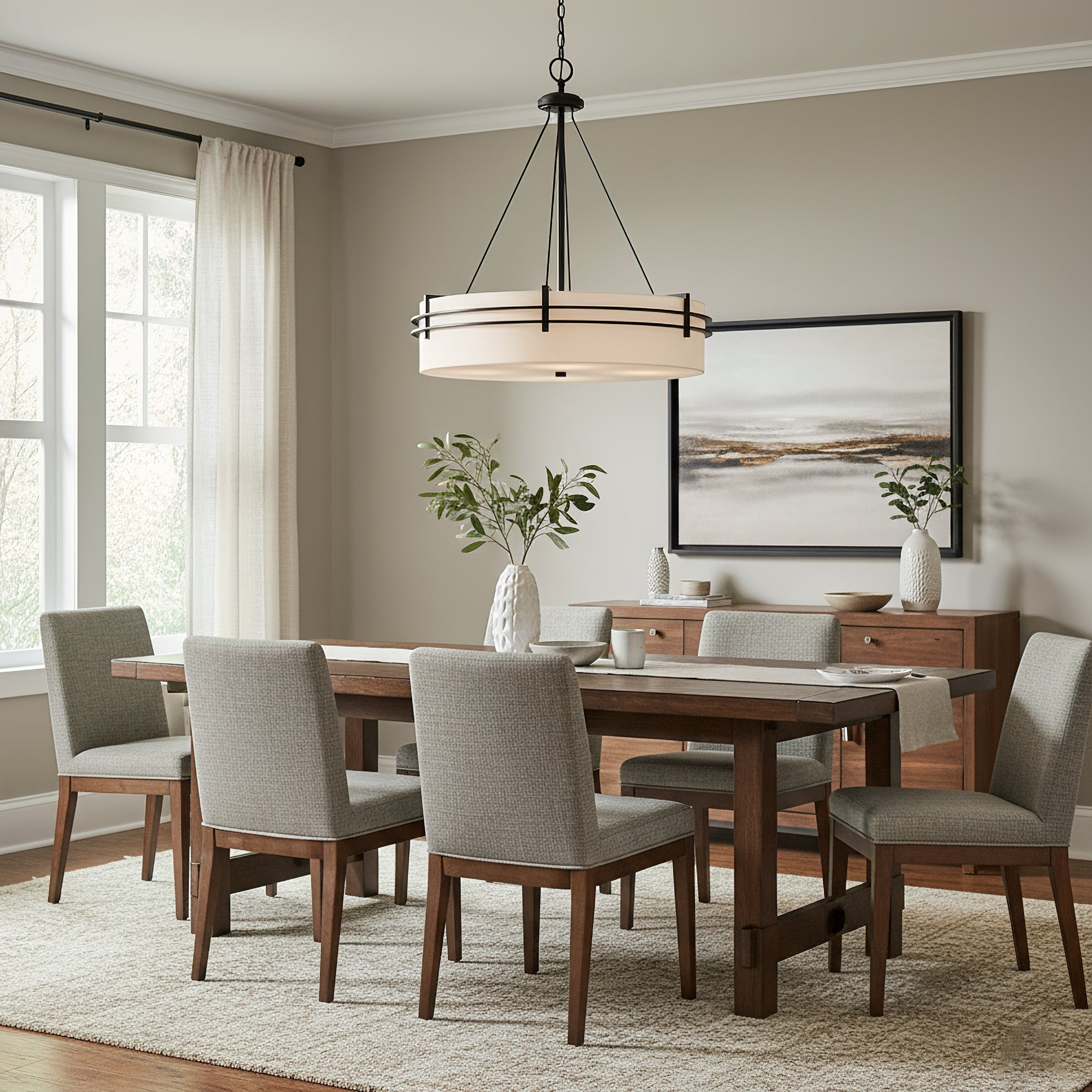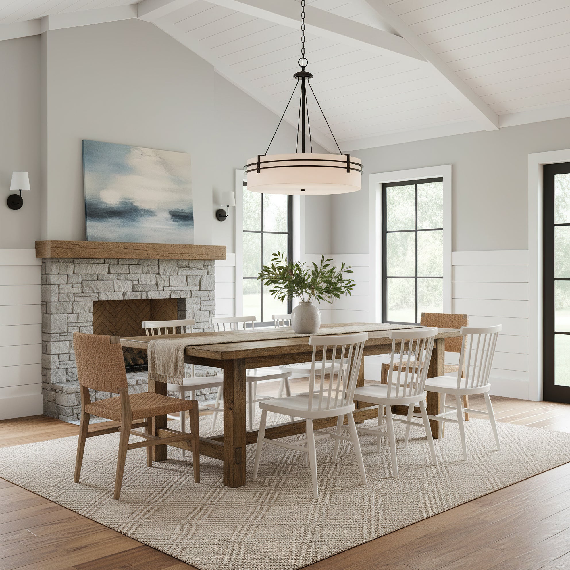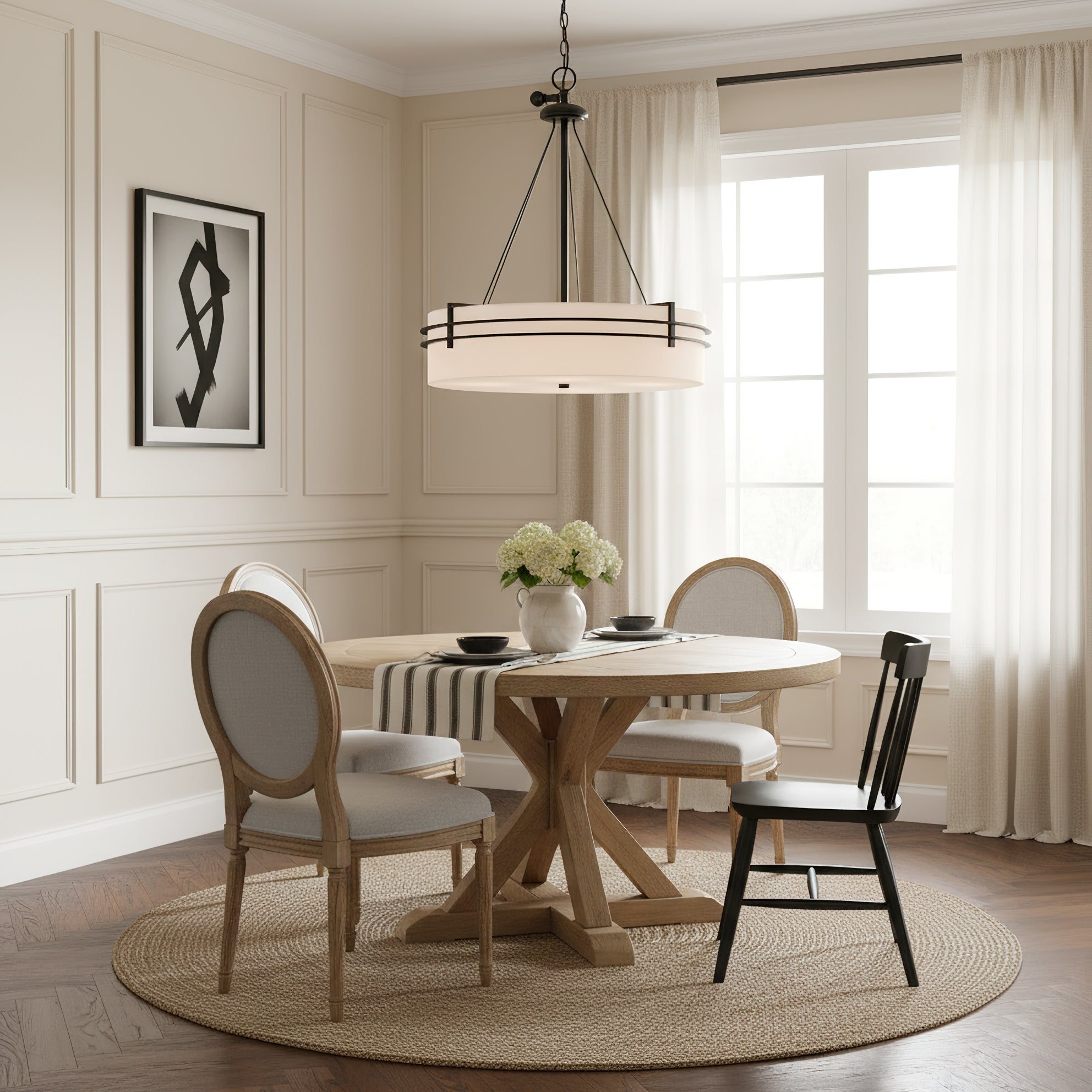 The Heddle Chandelier is a sophisticated lighting fixture that combines modern design with timeless elegance. Crafted from high-quality metal, iron, and fabric, this chandelier features a sleek, circular design with a fabric shade that emits a soft, warm glow. The metal frame adds a touch of industrial chic, making it a perfect addition to any contemporary or transitional space.