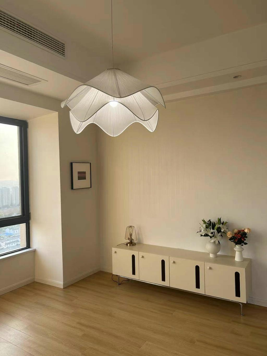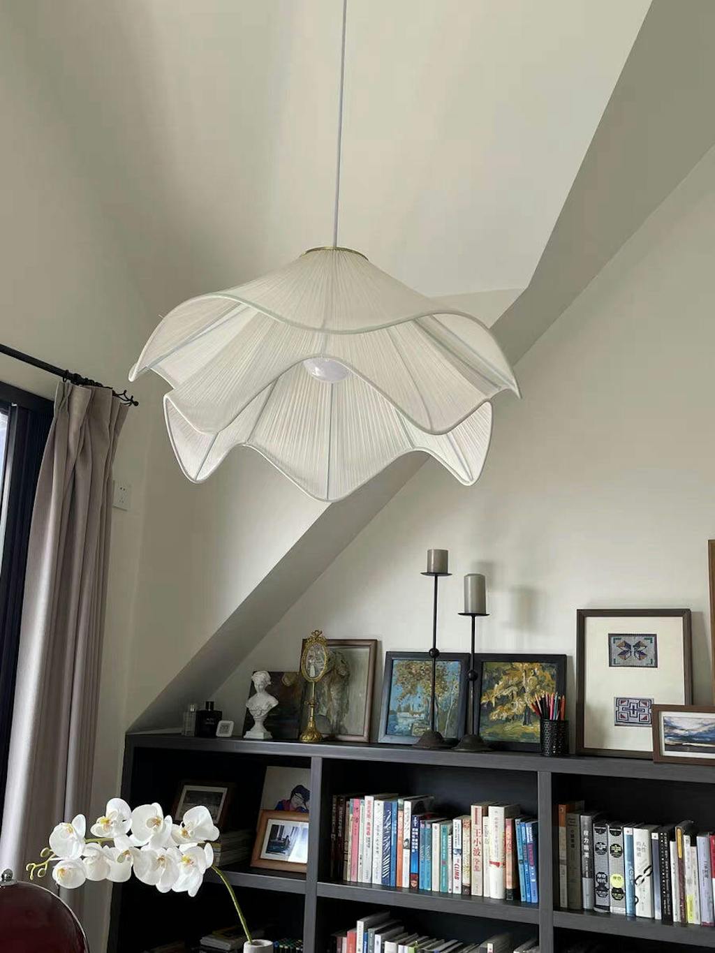 The Lia Pendant Lamp offers the perfect blend of modern style and classic elegance. Its fabric shade and timeless design bring a unique sophistication to any living space. Hang it alone or as a pair and enjoy subtle lighting with a contemporary flair.