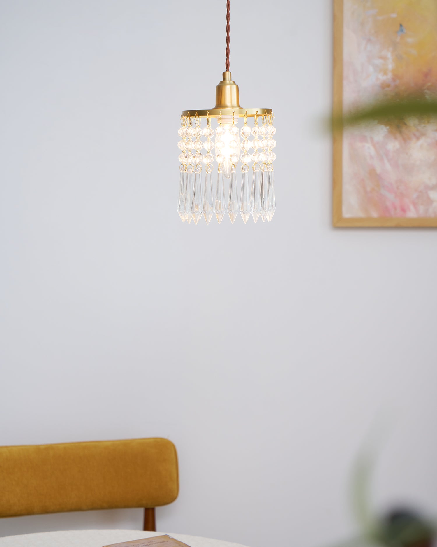 The Vintage Crystal Pendant Lamp head is matched with a translucent glass pendant decoration, and the shape is very beautiful and romantic, full of retro flavor. Space Application This pendant light is suitable for kitchen, dining room, barn, living room, porch, hallway and hallway use.