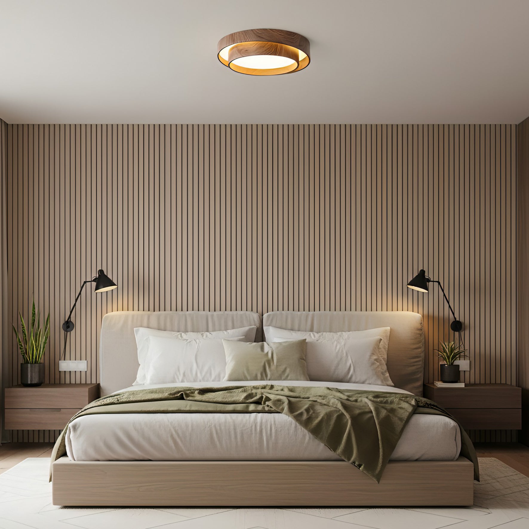 The Vaako Ceiling Lamp from dekorfine. Its warm walnut hue and seamless finish add a touch of sophistication to any room, while providing soft, ambient lighting. Perfect for contemporary interiors, the Vaako Ceiling Lamp enhances your home decor with style and functionality.