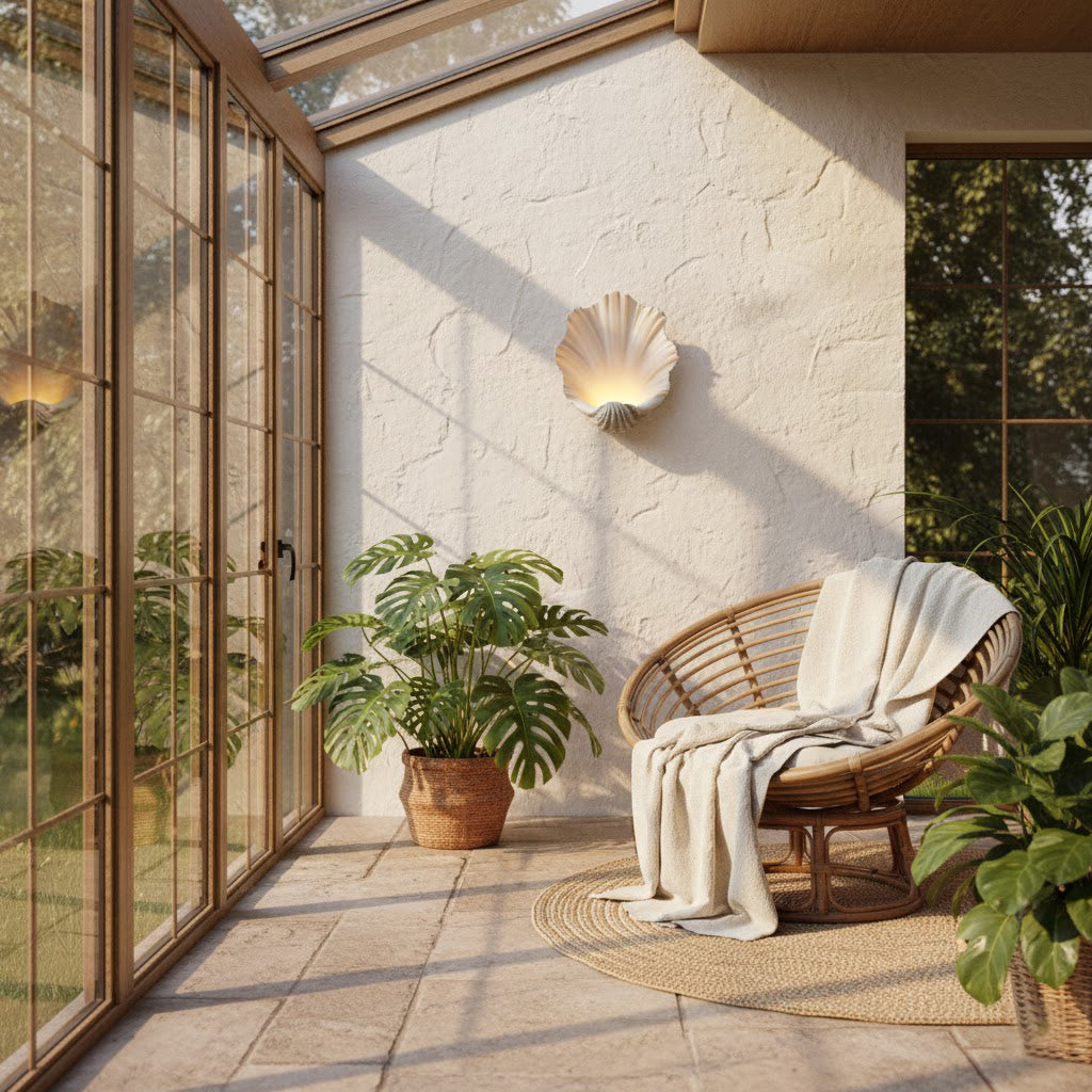 Bellacor Wall Light dekorfine features a sculptural resin design inspired by the graceful curves of a seashell. The textured base and smooth, fluted surface create an elegant interplay of light and shadow, casting a soft, ambient glow. Perfect for adding a touch of coastal charm or artistic flair, this wall light is ideal for bedrooms, hallways, or statement accent walls.