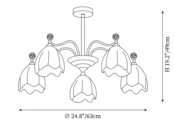 5 heads Size: ∅ 24.8″ x H 19.2″ / Dia 63cm x H 49cm (Power~40W)