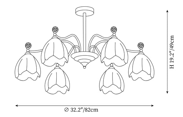 6 heads Size: ∅ 32.2″ x H 19.2″ / Dia 82cm x H 49cm (Power~48W)