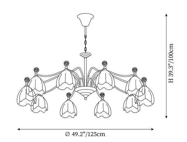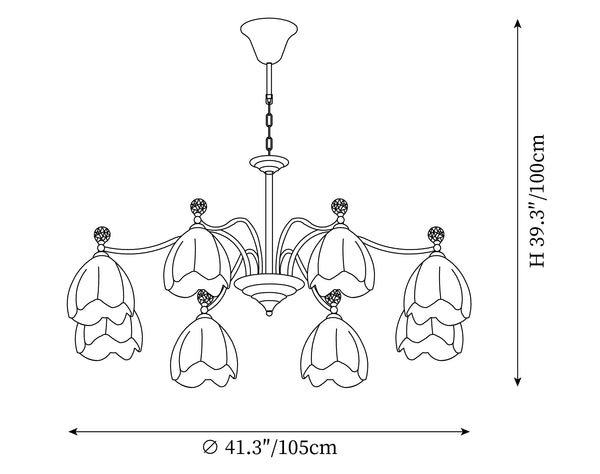 8 heads Size: ∅ 41.3″ x H 39.3″ / Dia 105cm x H 100cm (Power~64W)