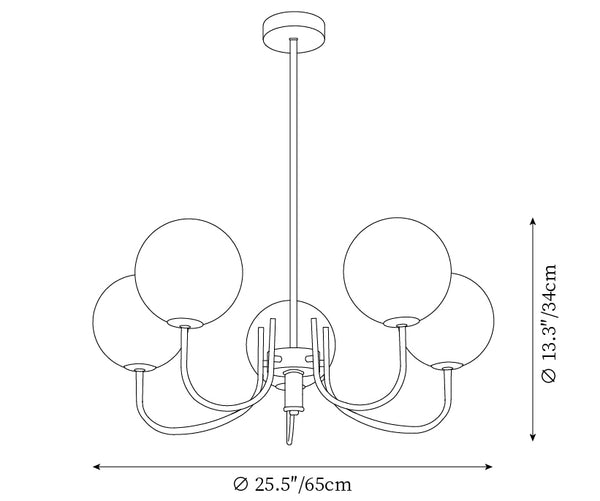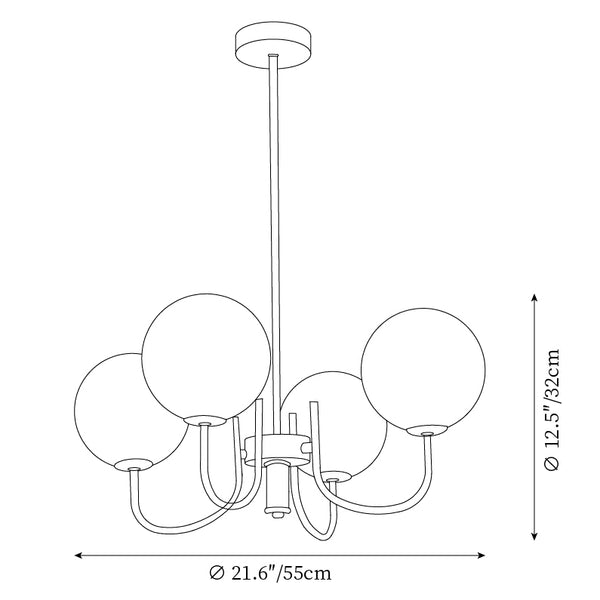 Deze unieke plafondlamp roept een Art Deco-gevoel op, met vier globe-tinten die naar buiten vloeien en afwisselend verspringen uit het gebogen frame. De matte, matte afwerking van de lampenkappen is gemaakt van glas en met zilver afgewerkt metaal en verspreidt zachtjes het licht.