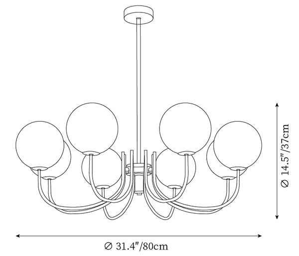 8 koppen Grootte: ∅ 31,4″ x H 14,5″ / Dia 80cm x H 37cm