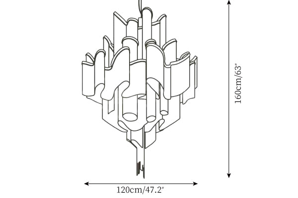 Size: Dia 120cm x H 160cm / ∅ 47.2″ x H 63″ (uses twenty-four E14 bulbs)   (Weight: 32.8KG/72.3lbs)