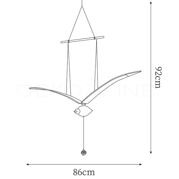 This beautiful work of art celebrates nature's ingenious simplicity, beauty, and efficiency. More specifically, it is an extremely refined depiction of a shorebird in graceful flight. A delicate, articulated hanging sculpture that perfectly captures the essence of a coast gull gliding in the wind. The stylish object transports creativity and rustic and nautical charm in equal measure. Suspended on light cords, the seagull looks as if it were floating through the room on its own. When you pull on the small, decorative hemp knot, it actually sets the bird in motion. This extraordinary piece is made from recycled pine wood and lovingly hand-painted. This focus on sustainability underlines the high-quality standards and makes each unique.