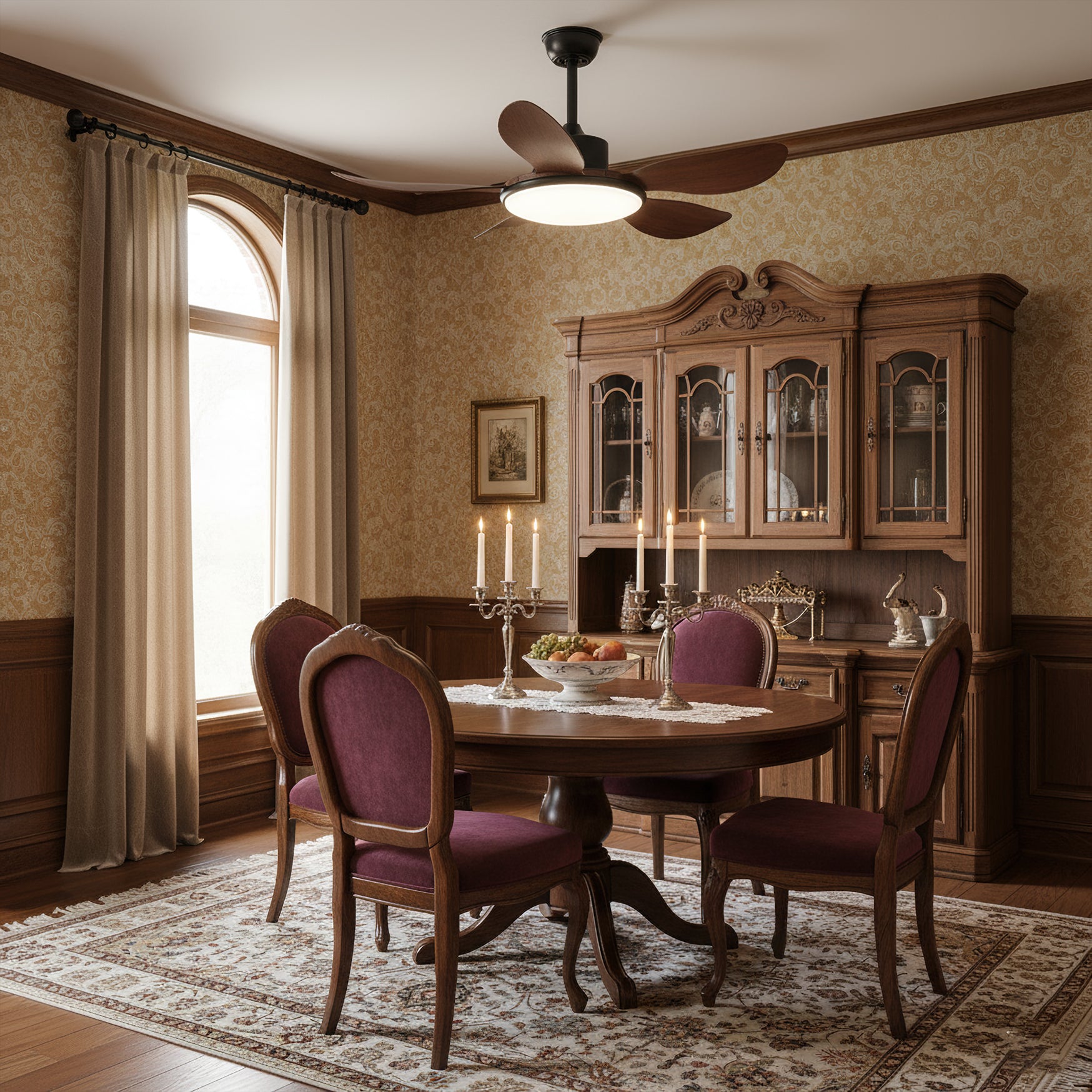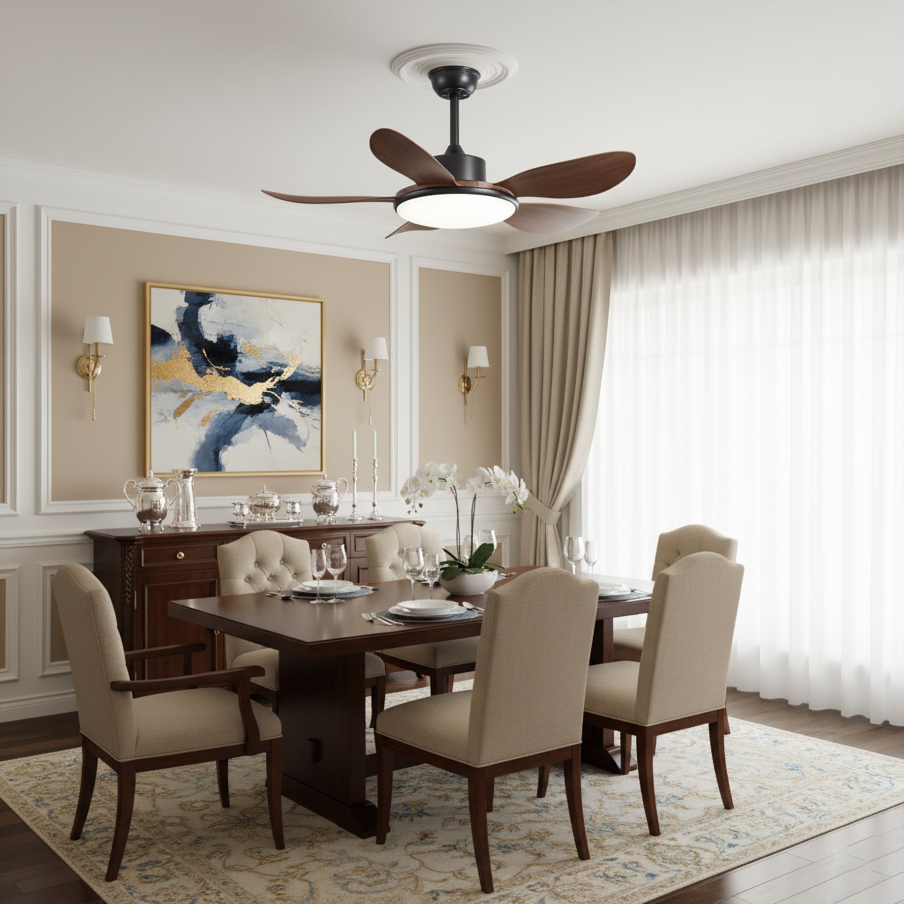 The Ovlaim fan is a fantastic example of pure Contemporary and Organic Modern design. The inspiration is pulled from natural, flowing shapes, executed with modern, minimal materials. It's designed to be a sophisticated, functional statement piece that adds warmth (through the wood tone) but maintains a sleek, modern edge.