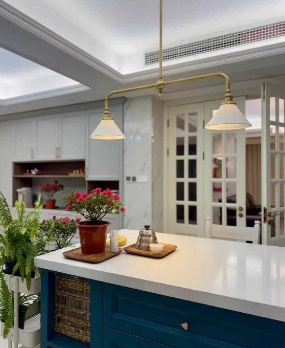 The Theron Brass Chandelier from dekorfine blends timeless elegance with functional sophistication. Featuring a warm brass finish and two conical white shades, this fixture offers directional lighting with a clean, symmetrical form. Its balanced design is ideal for dining areas, kitchen islands, or workspaces where both style and clarity are key.