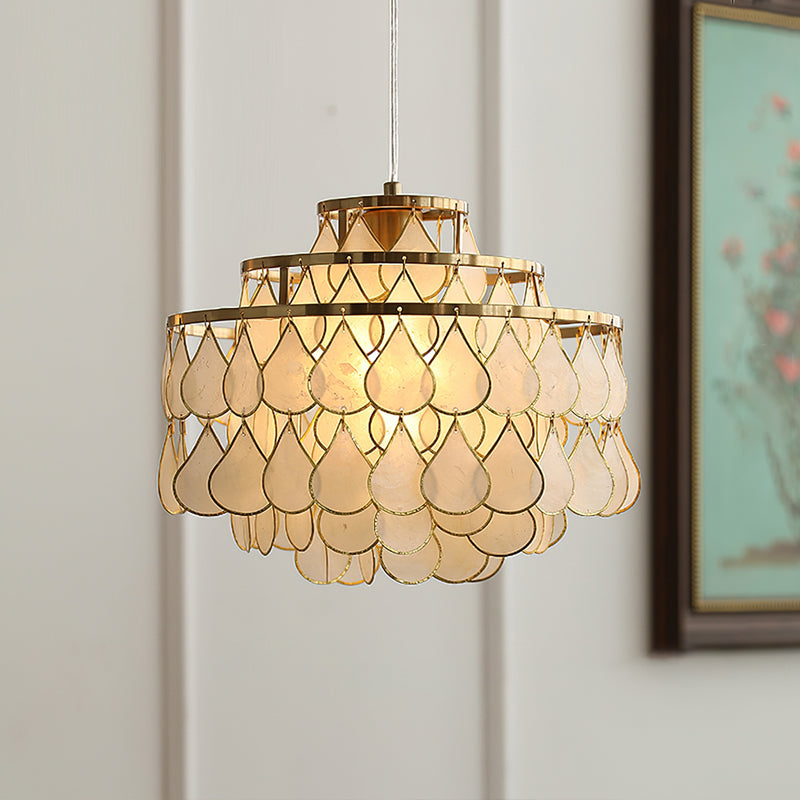 This unique Vivant Shell Pendant Lamp is sure to add a touch of elegance to any room. Handmade with real shell, this lamp casts a soft, warm light, perfect for ambient lighting. The stylish design features a natural shell surface, making it a beautiful addition to any home.